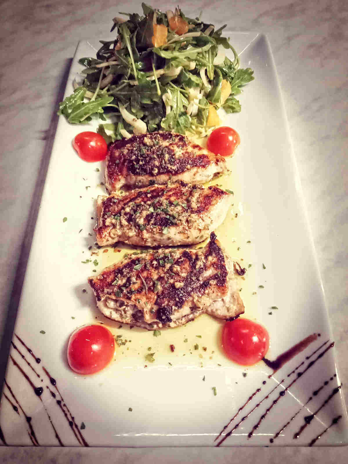 LAMB CHOPS MARINATED WITH TRADITIONAL ITALIAN DRESSING, GRILLED AND SERVED WITH A MIXED SALAD.